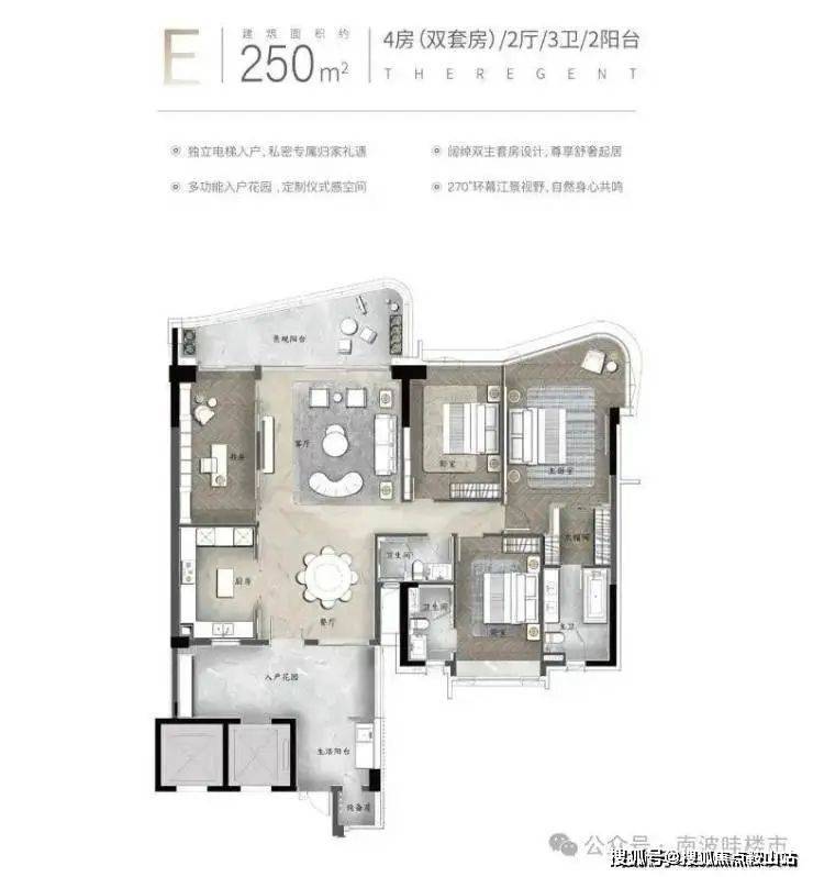 产品亮点:私家电梯入户、有天有地、部分楼层三面采光、约3.4米层高、动静分区南北对流、U型阳台360°观景、约6.8米挑空餐客厅、中西双厨、四套房设计、部分房间带阳台设计