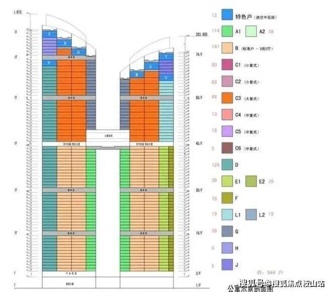 层数:A栋82层,B栋75层