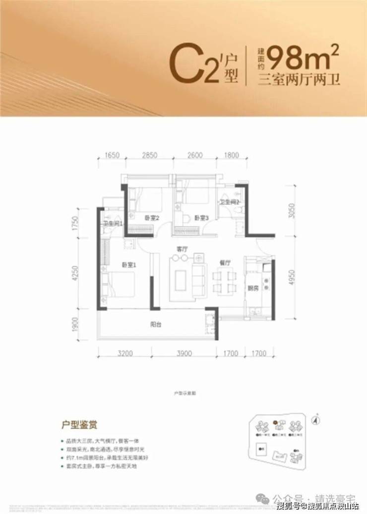 约86-98㎡3房2厅2卫