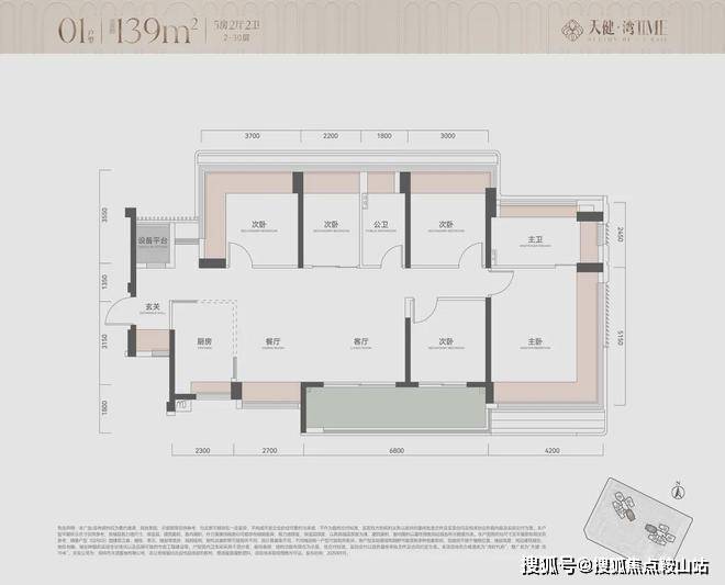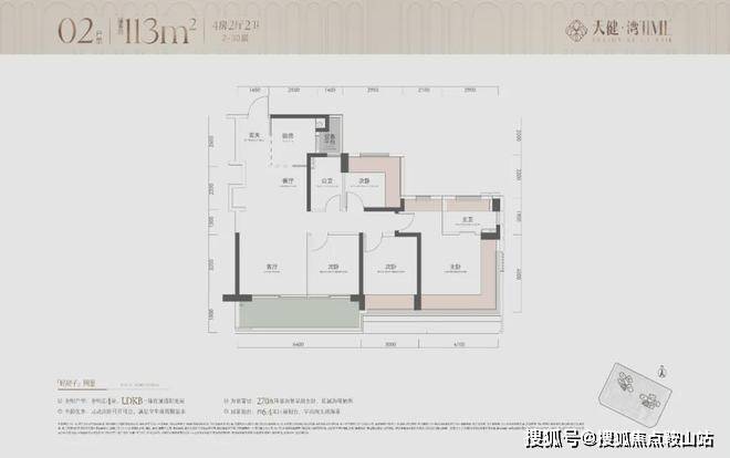 户型为113㎡四房114四房和139㎡五房约290套,2栋100米内30层住宅,2梯5户,其中主力为113㎡四房,整体以朝南及西南为主,有两套朝东北面向金众。