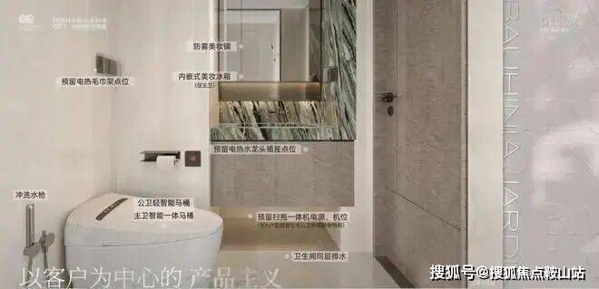 静音专项设计、线形地漏(淋浴间)、同层排水(洗手间)。