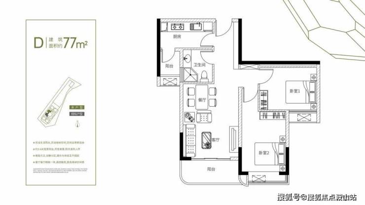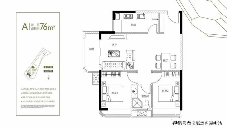 建筑面积约76-78㎡2房+1卫(灵活多变+1多功能空间)
