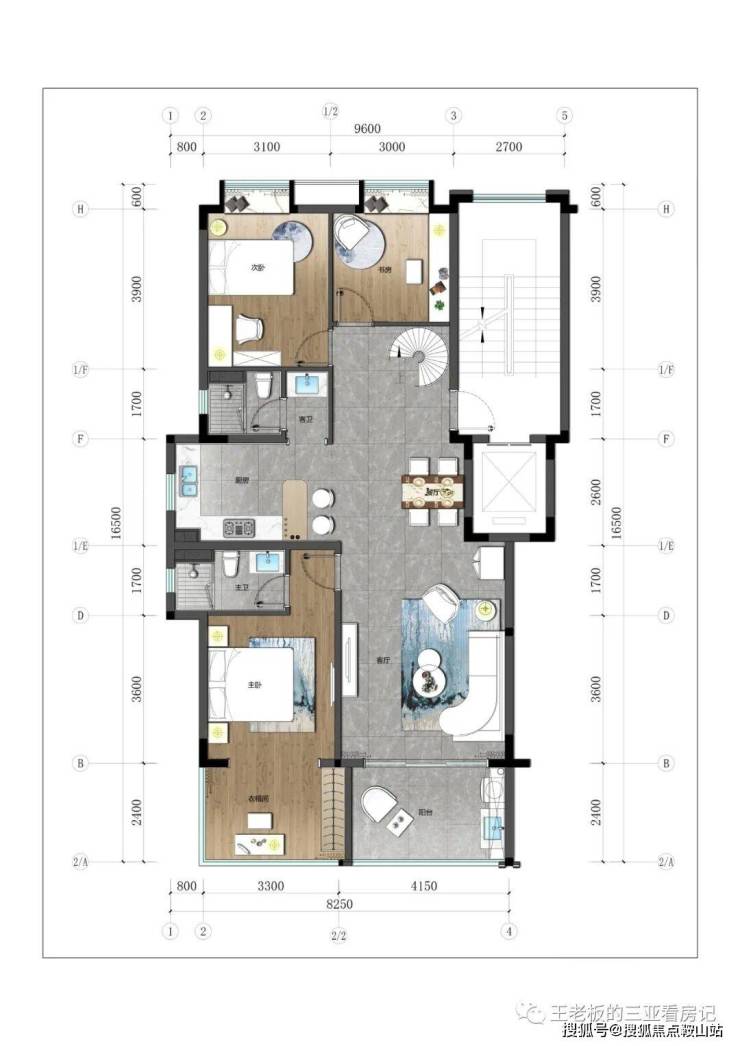 3.下叠:建筑面积约100-110㎡,四房三厅三卫。