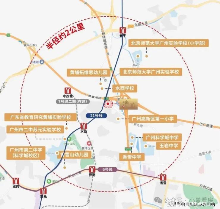 从本项目出发,约1.8公里即达重点中学——广州市二中苏元实验学校,约4公里可到北京师范大学广州实验学校;周边还有玉岩中学、科学城中学、玉山学校、水西学校、广州市科峻小学等学府环绕。