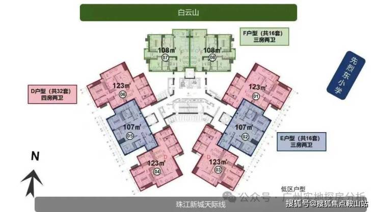 整个项目分为高低区,户型分布也有不同。