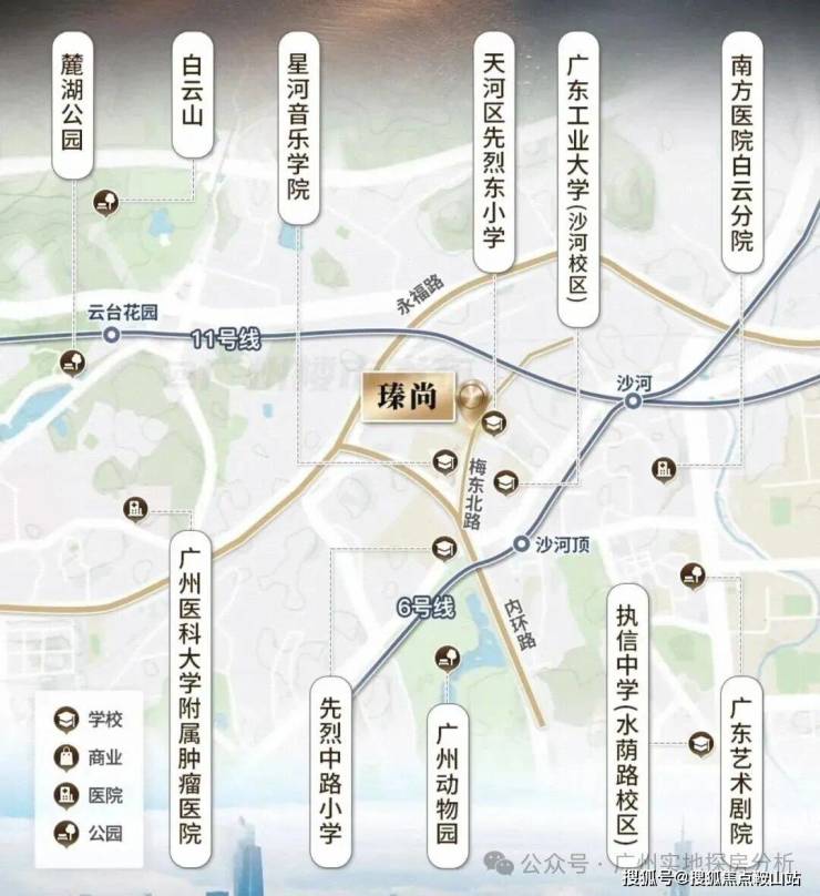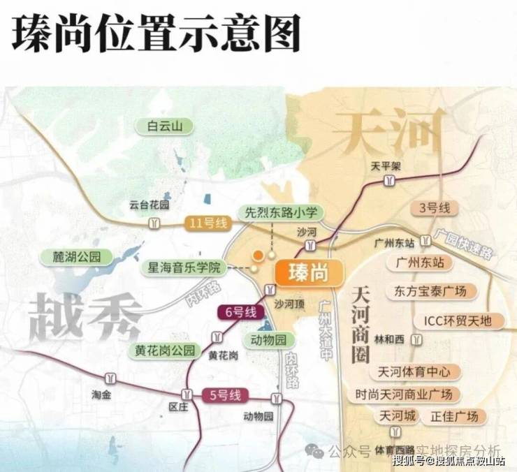 三地铁交织(5/6/11号线),距离6号线沙河顶站B出口约500米,1站至沙河站换乘广州大环线11号线,2站至区庄站换乘东西大动脉5号线。3站淘金,6站北京路、珠江新城。