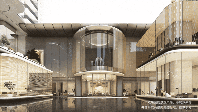 天奕关于社交空间设计的巧妙在于,不仅有纯粹的室内空间和景观组团会为社区内的社交预留空间,还会依托下沉会所天然的垂直视觉空间,预留出半开敞式的城市会客厅,融入自然景观之中。
