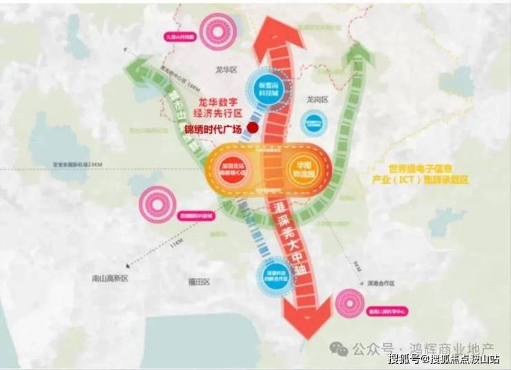 科创产业:北站商务核心区与坂田坂雪岗科技城双区交汇,集聚美团、深圳通、华为、富士康等龙头产业,形成超密集企业矩阵。