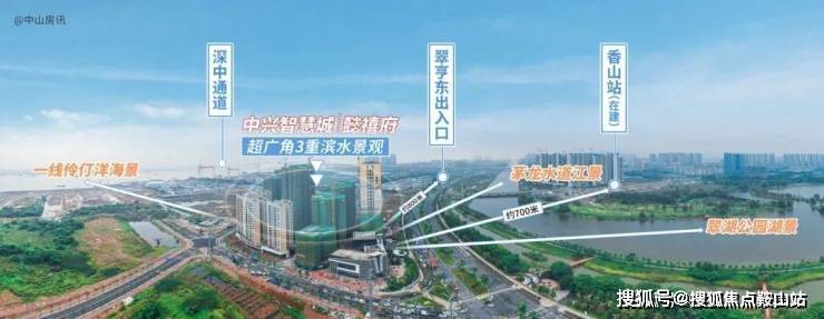 项目距深中通道翠亨东出入口约800米,紧邻建设中的南中城际香山站。南中城际香山站与项目楼下的翠湖公园组成“一湖一站”的TOD综合体。
