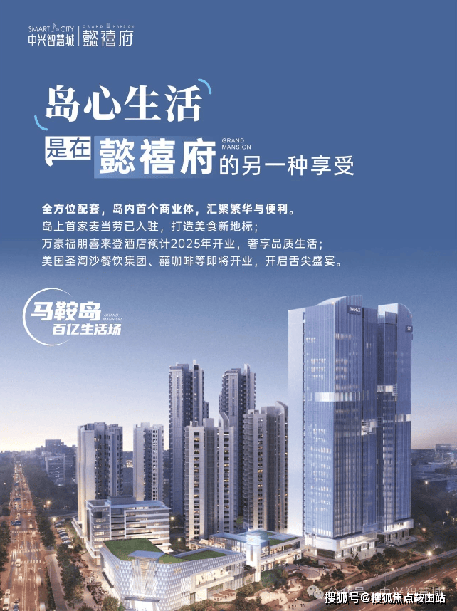 【岛心生活】当百亿配套成为基础配置,生活本身就是史诗级作品~岛内首个大型商业体,打造全生命周期配套,实现步行式繁华生活圈马鞍岛首家麦当劳已入驻,家门口即美食新地标万豪福朋喜来登酒店预计今年开业,奢享品质旅居体验美国圣淘沙餐饮集团、囍咖啡等开业,开启舌尖上的马鞍岛
