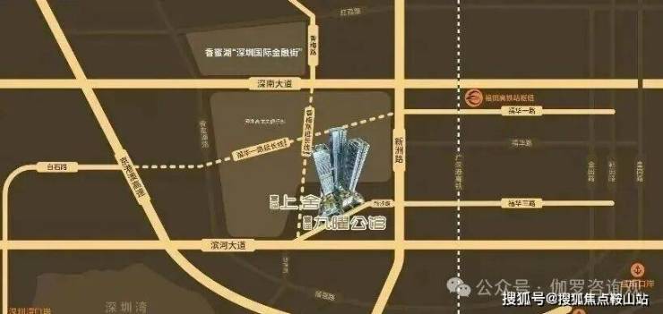 项目占位深圳最高水平金融总部聚集区、国家级南方金融中心的香蜜湖金融中心南区。⾹梅路南延线&福华⼀路延⻓线贯通双⾦融中⼼,项⽬位于⾹蜜湖⾦融街1公⾥半径⽣活圈内。
