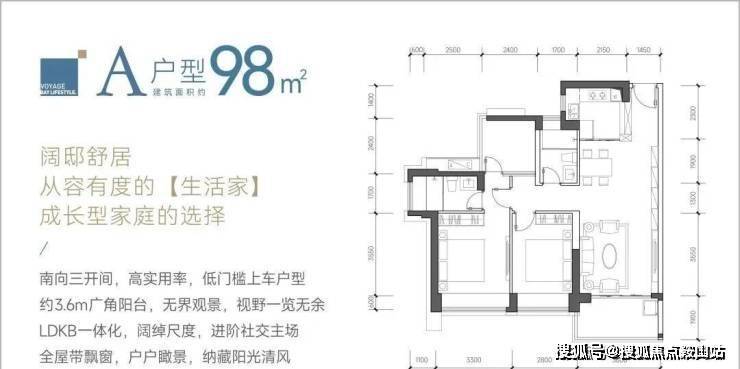 98㎡的3房2厅2卫,设计的是经典竖厅格局,LDKB一体化设计,客厅3.6米开间,三开间朝南,动静分区,3个卧室分别做到了主卧13.69㎡/次卧11.62㎡/次卧5.76㎡(包含墙体飘窗),都不用搭配飘窗做床,L型厨房,卫生间干湿分离,得房率约:89%(包含赠送),西南、东南或正南朝向。