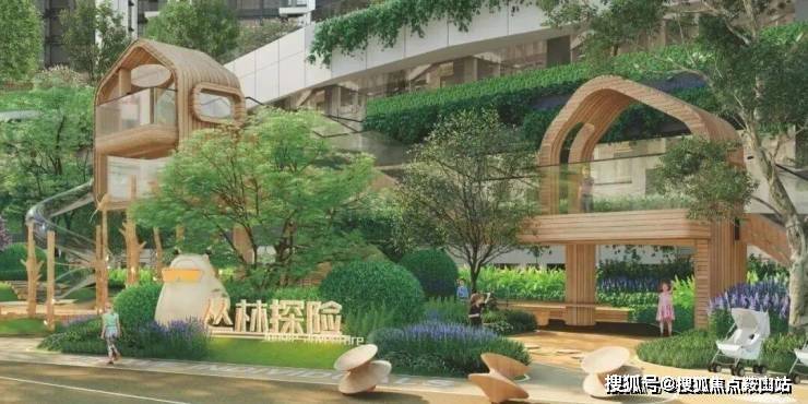 小区还对标了五星级酒店会所标准打造了约600㎡的泳池会所,配备了约10米长的儿童泳池与45米长的成人泳池,且配建了瞭望塔、树屋、攀岩墙、健身天地、功能球场等配套设施。