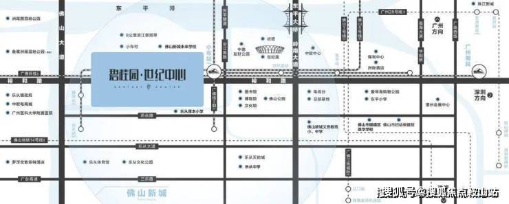 在配套设施方面,碧桂园・世纪中心展现出了卓越的品质。商业配套丰富多样,乐从天佑城、东平保利广场、爱情海购物公园、十亩地广场等已开业运营,满足了业主日常购物、餐饮、娱乐的需求。项目自身还规划了约 50 万㎡的航母级商业综合体,签约引入 6 万㎡皇权集团(香港)免税购物中心,将打造佛山新城首个奢侈品购物中心。目前皇权已与普拉达、江诗丹顿等 19 家奢侈品品牌达成合作意向,未来这里将成为佛山新城的活力人气中心和超奢商业打卡点,为业主带来高端、时尚的消费体验。教育配套更是得天独厚,项目周边名校环绕,民办名校英华学校已开学,省一级小学东平小学也已投入使用,佛山一中顺德学校设计单位已启动招标,华南师范大学附属乐从小学和初级中学正在建设中。项目内还规划了 1 所公立小学和 2 所 18 班幼儿园,实现了 9 年目送式教育,让家长无需为孩子的教育问题担忧。交通配套也十分便捷,5 横 5 纵的交通网络,包括裕和路、荷岳路、乐从大道、魁奇二路、广台高速等横向道路,以及佛山大道、汾江南路、岭南大道、华阳南路、广佛江珠高速等纵向道路,贯穿佛山主城区,1 小时内可连接广州、佛山、江门、珠海等城市。此外,还有 6 地铁 2 轻轨的规划,让业主能够畅享 1 小时内深港澳大湾区生活圈,出行更加便捷高效。