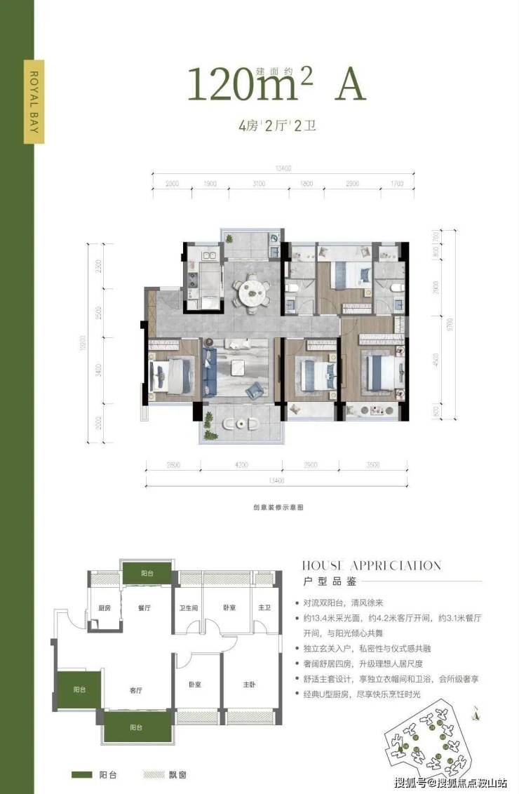 户型亮点:奢阔舒居四房,舒适主套设计,享独立衣帽间和卫浴