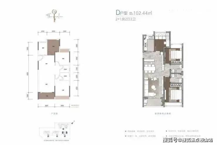 3栋17层,两梯四户,户型为69㎡两房一卫及102㎡三房两卫;