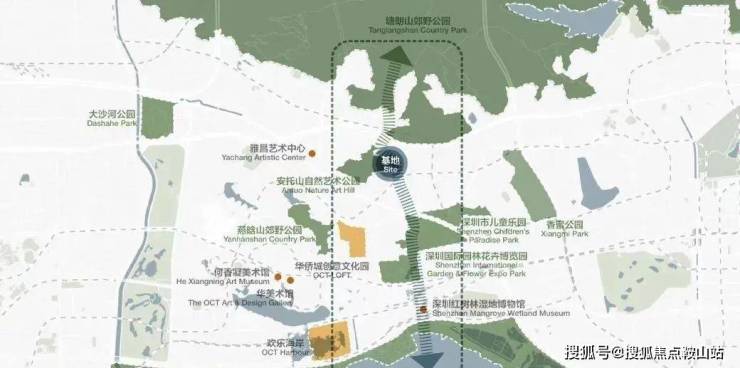 中心区域:深圳山海城中轴,左手香蜜湖、右手华侨城,六大总部基地环伺