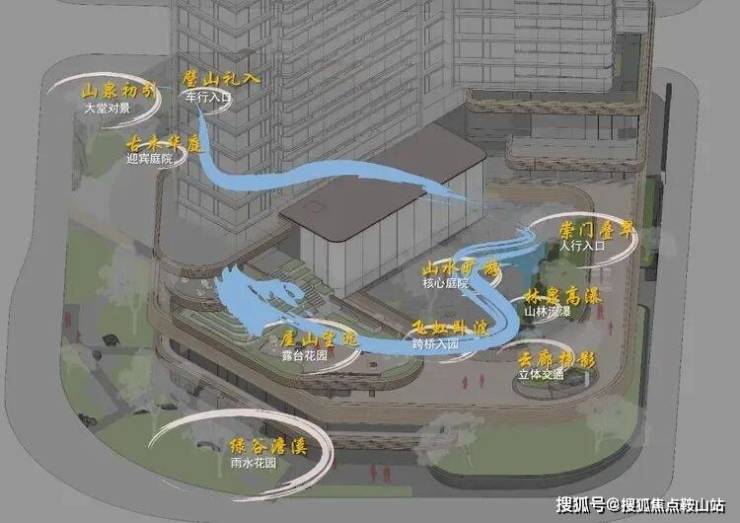 同时,空中花园又巧妙地包裹了泳池,并结合4层架空层,通过抬高设计,雕琢出高定花园会所。