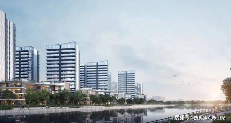 户型排布从石榴岗河自东向西依次升高,保证了约300米宽的生态水景面。