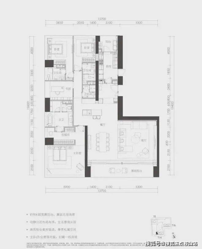 面积:户型多样,包括230-280㎡3房3卫、300-380㎡4+1房5卫、576㎡4+1房6卫、600-700㎡6-7房7卫等