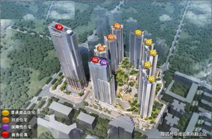 项目住宅产品建设用地面积约 4.1 万㎡,计容建面约 29万㎡,容积率 7.03,规划机动停车 2681 辆。项目由5栋住宅(1#1、1#2、1#3,2#2、2#3)、1栋(1#4)保障房、3栋(1#6、1#7、1#8)回迁房组成、1栋(1#5)公寓组成。