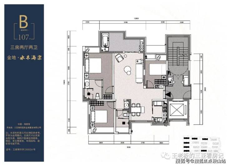 建筑面积约107㎡;3房 2厅 1厨 2卫 大阳台 入户泡池
