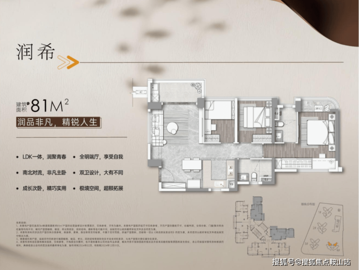 ◎ 约81㎡ · 大3房2卫 · 全盘仅60套