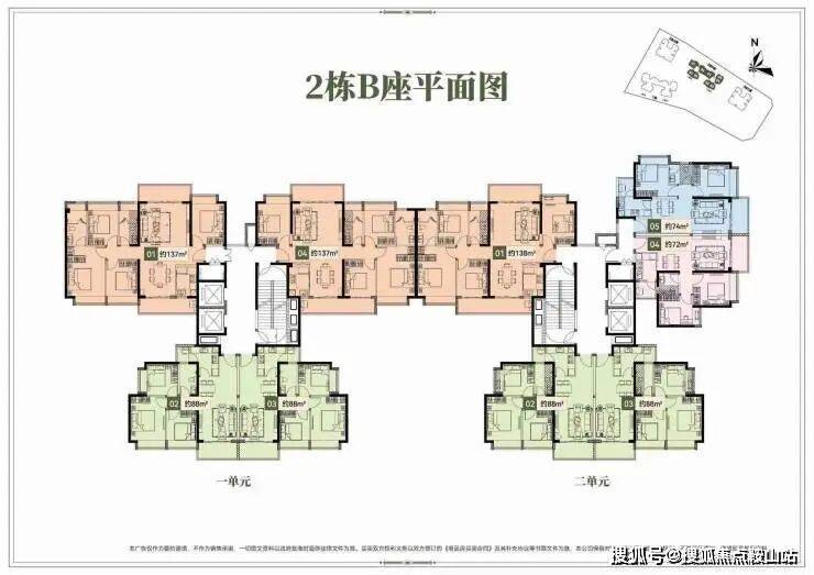 🔹2栋B座一单元01、04户型、2栋B座二单元01户型:面积约为137-138㎡的4房2厅2卫;