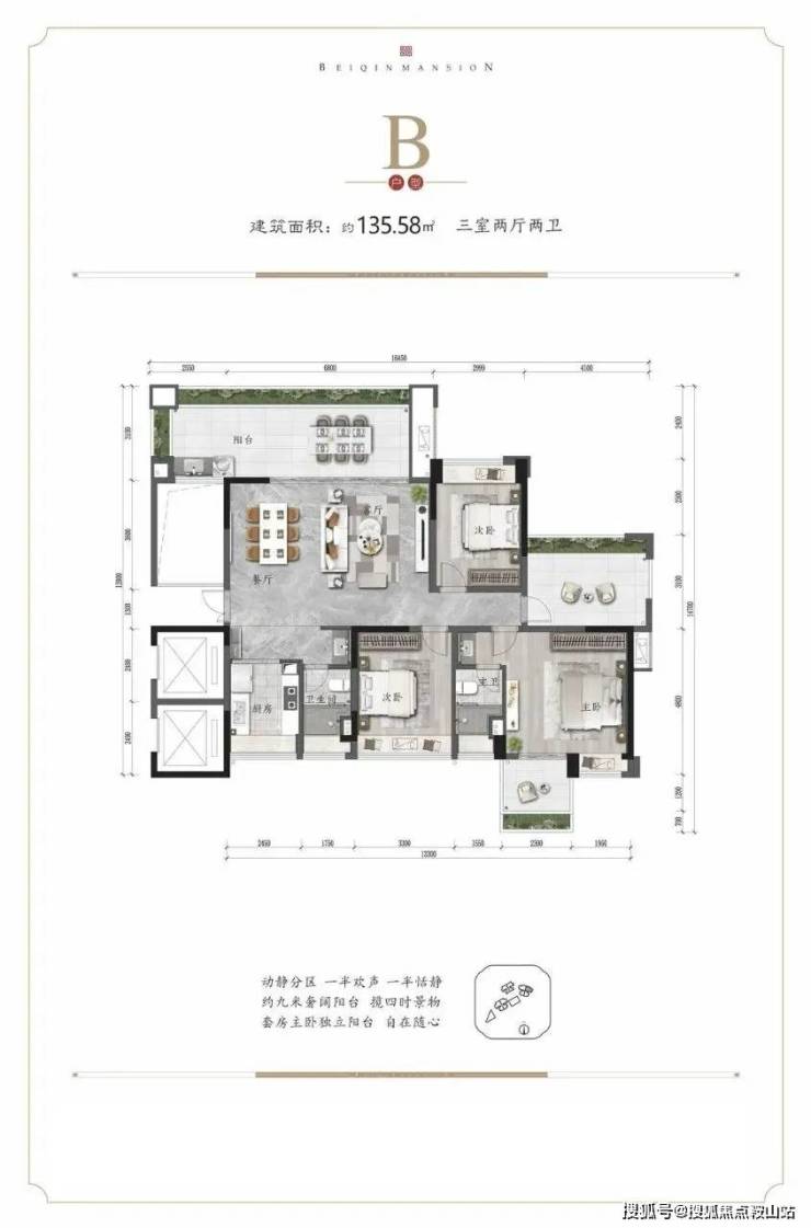开发商:三亚鼎赫房地产开发有限公司预售证号:三房预许字【2021】120号项目特色:世界湾心资源,半小时四大湾区度假圈,榆林湾北国韵山水园林生活;宽境户型:逾16米建筑面宽、约4.2~6.8米横厅设计、逾9米奢阔观景阳台,甄选品牌精装,全龄配套。产品户型:103平,赠送22平,使用面积125平 得房率104%136平,赠送50平,使用面积185平 得房率118%1.主要核心价值,位于主干道榆亚路精致中式山水园林,得房率高,容积率低,超大阳台楼盘价格:330万起总建面:28067.11㎡容积率:2.0产权年限:70年住宅建筑密度:19.98%绿地率:约40%预计交房时间:2023.10.31项目地址:三亚市吉阳区榆亚路 中段(吉阳区政府南2公里)项目介绍三亚北秦华府项目位于三亚榆亚路中段,凤凰岭城市生态景区东麓,吉阳区政府南约2公里,紧邻三亚旅游主轴——榆亚路,快速通达四大湾区:大东海、亚龙湾、三亚湾、海棠湾,实现三亚半小时旅居度假生活;距离环岛高铁亚龙湾站约7公里,距离三亚站约15公里,距离三亚凤凰机场25公里;15分钟即可优享三亚市中医院、三亚华侨医院、广州中医药大学附属粤海医院等医疗资源,距离解放军301医院约20分钟车程。北秦华府园林景观以叠石奇景,精巧花木为主,赋山形,观山语,呈现了一种如居山中的归家体验。二进镜水院,以水景、曲桥、角亭为主,呈现了符合中式生活特色的园林空间。项目园林以环绕式连廊、点景亭台、曲桥竹径,将山水园境串联,归家、入户、观景、会友合而为一,一步一景,归心生活。