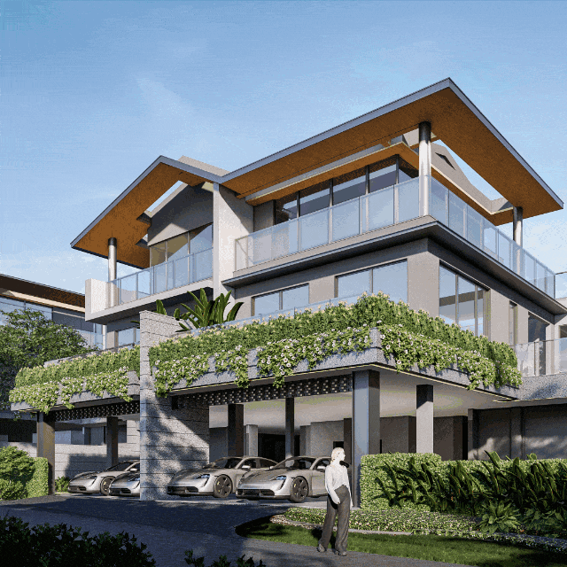 海棠春晓的精工品质匠心独具、真材实料。建筑设计拒绝批量化复制,每一席墅品均因地制宜定制化设计,建筑部分立面采用高档的蓝眼睛天然石料配以大面积玻璃,融入海南本土特有的火山岩及仿木纹铝板等精致装饰。