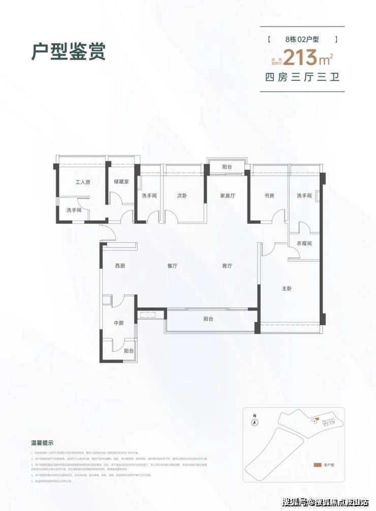 213㎡的4房3厅3卫,设计的是横厅南北通透格局,一梯一户,进门入户玄关,LDKB一体化设计,四开间朝南,双阳台通透,主卧大套间设计,还配有保姆独立套房,中西型多功能厨房,卫生间干湿分离,得房率约82%(不含赠送),阳台主朝东南向。