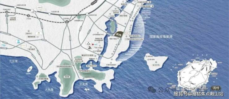 海棠湾核心地段,临海面河,玉带缠腰,河海汇聚呈“敛财”之势,背靠中国30000公里海岸线上最高的地标建筑保利瑰丽酒店,远侧是连绵起伏的环山,藏风聚气,得水为上,上风上水的绝佳风水宝地;