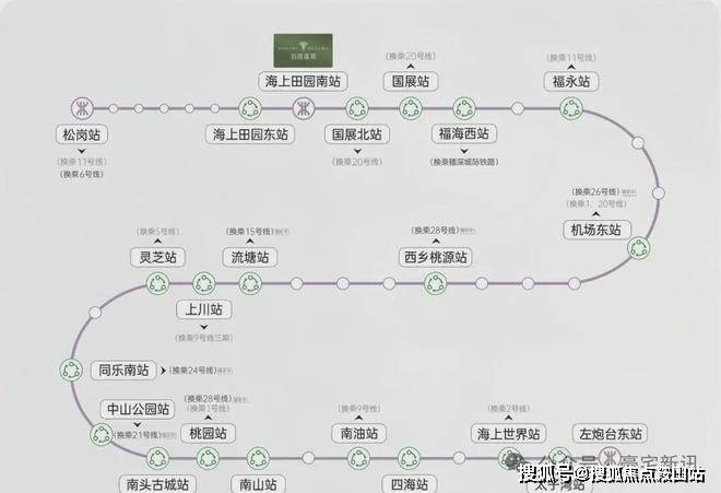 从项目出发,直线距离12号线海上田园南站A出口约100米,1站到国展北可换乘20号线,5站到福永可换乘11号地铁线。