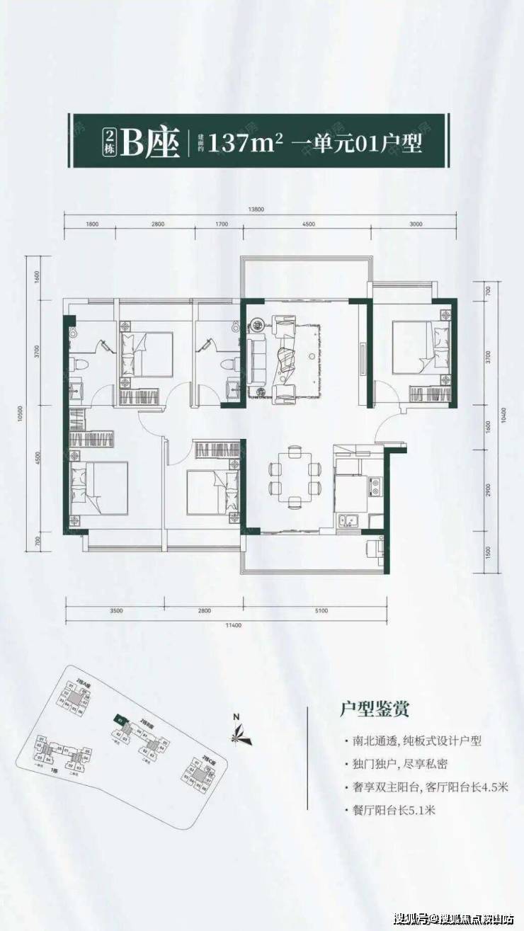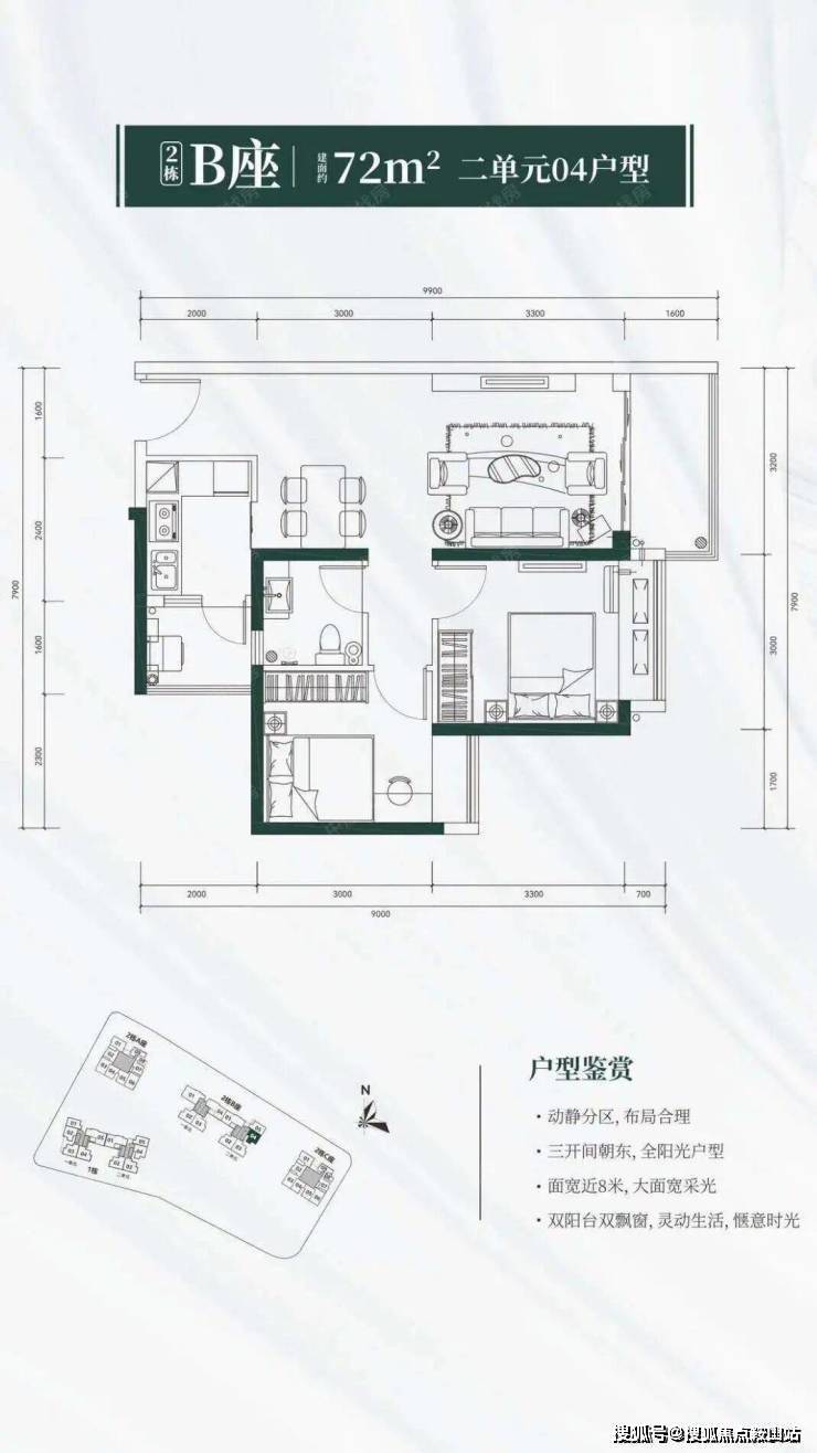 户型简介双阳台,全阳光户型