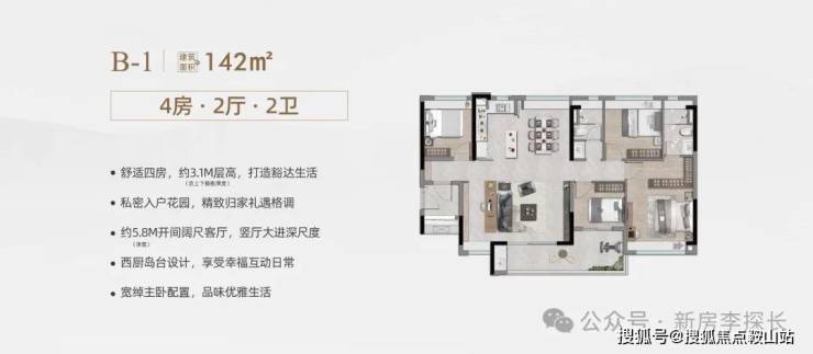 9、最小面积97方做3+1房(功能分区更合理),142方大四房不超豪宅面积。