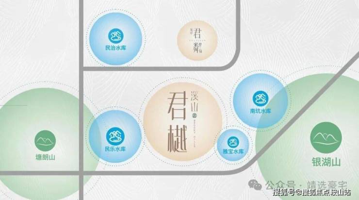 溪山君樾位处深圳“中心湖区“,是深圳最稠密的湖区所在地,项目周边环伺4大自然生态湖泊---民治水库、民乐水库、雅宝水库、南坑水库,居住在此,湖岸微澜风光无限,滋养健康涵养心境,孕育都会生活于家族贵雅之道;独享城市无价峰顶对晤湖景无垠的豁达高远。