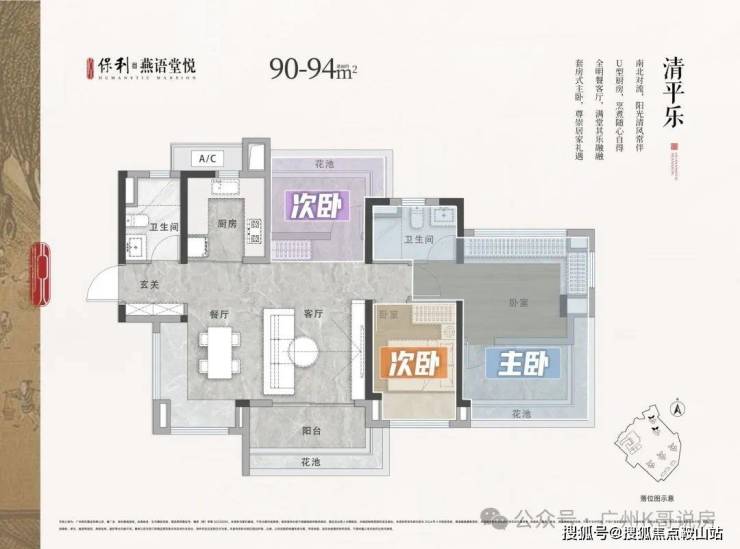 户型有90-94平横厅三房两卫,92平三房两卫,107-112平四房两卫,125平四房两卫