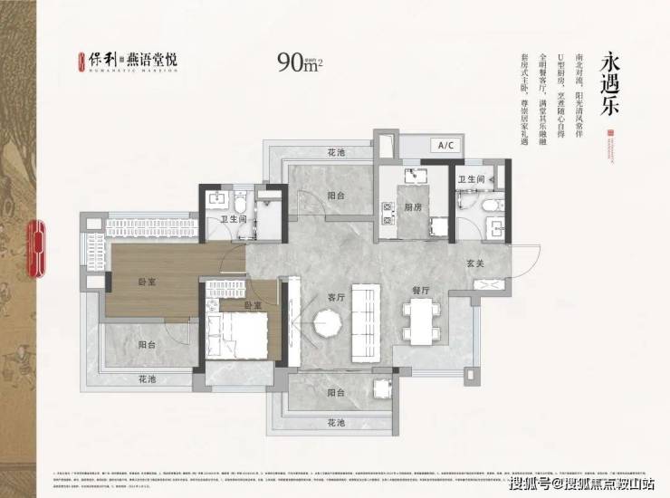 除了92平竖厅是报建2个阳台外,其它户型都报建有3个阳台,定位偏刚
