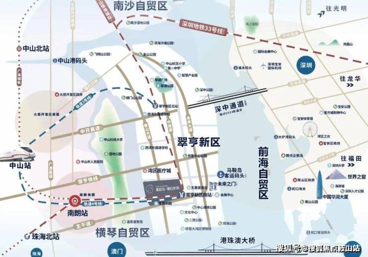 雅居乐湾际壹号雄踞翠亨新区马鞍岛南部中轴,占据着深中通道中山段唯一直接接驳点的战略位置。项目与深中通道出口仅3公里距离,通车后到达深圳宝安机场仅需30分钟,比深圳大部分郊区更便捷。