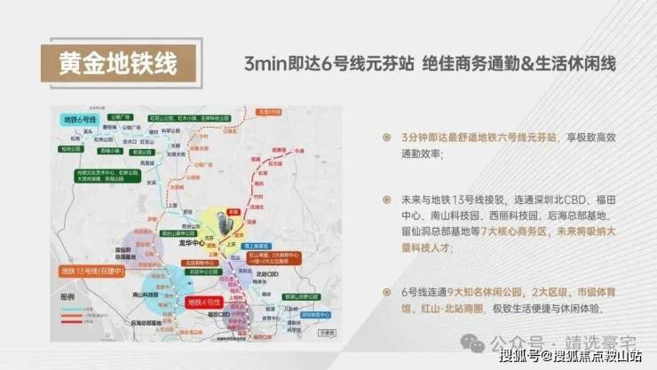 距离深圳北站交通枢纽仅3 站,三大高铁形成半小时湾区经济圈,4小时武汉、厦门经济圈,8小时京津沪经济圈;