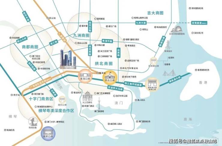 珠海与澳门极点桥头堡,扼守双城风云际会的湾区之内。眼前是前山河的锦绣、澳门城的璀璨,亦是珠海的繁荣,天赋区域,成就珠海CBD坐标级作品。