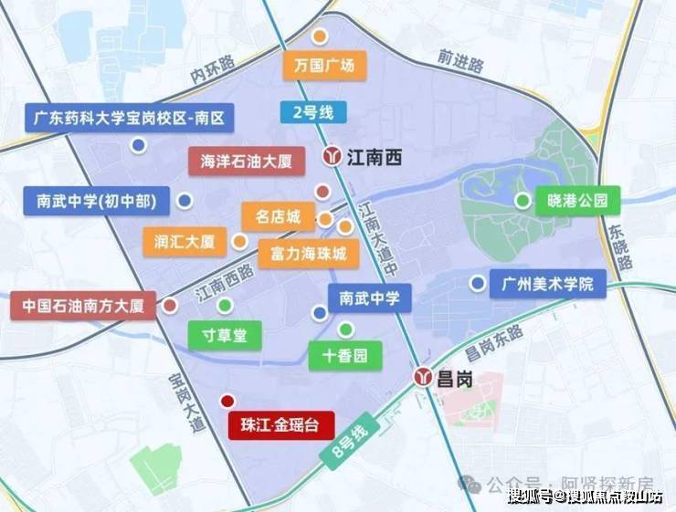项目对面即为广州市江南外国语学校(省一级),周边2公里内昌岗中路小学、广州市第五中学、广州市南武中学等多所省级名校环伺;