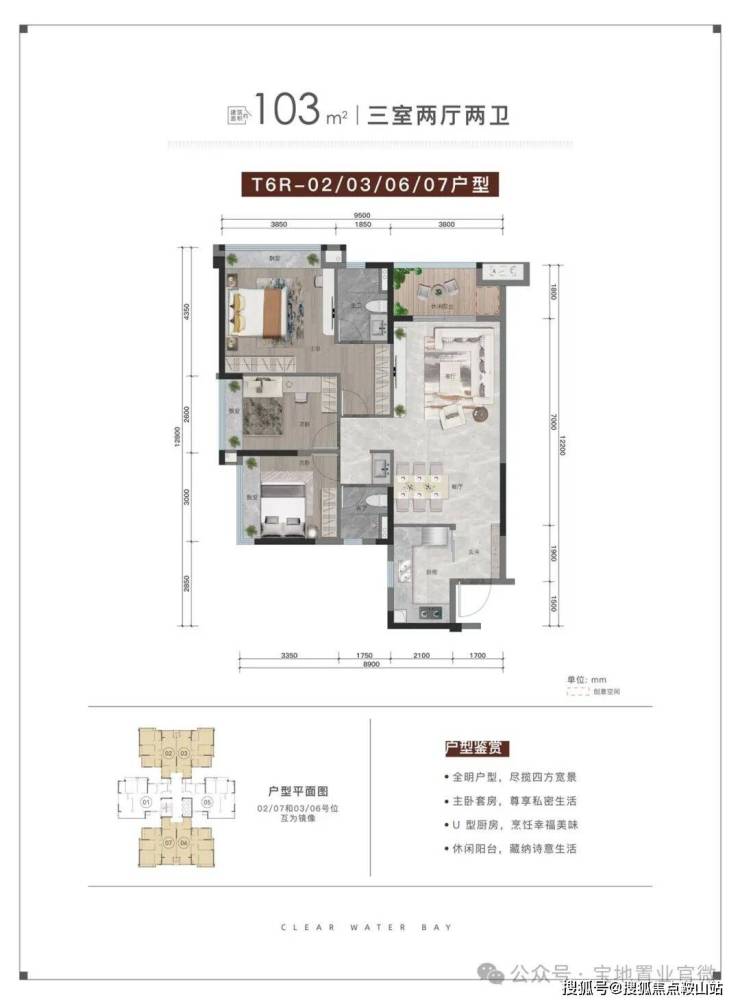 面积:103㎡、三房两厅两卫、两梯六户↓↓↓