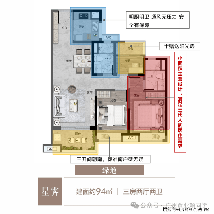 📣约94㎡三房二厅二卫:
