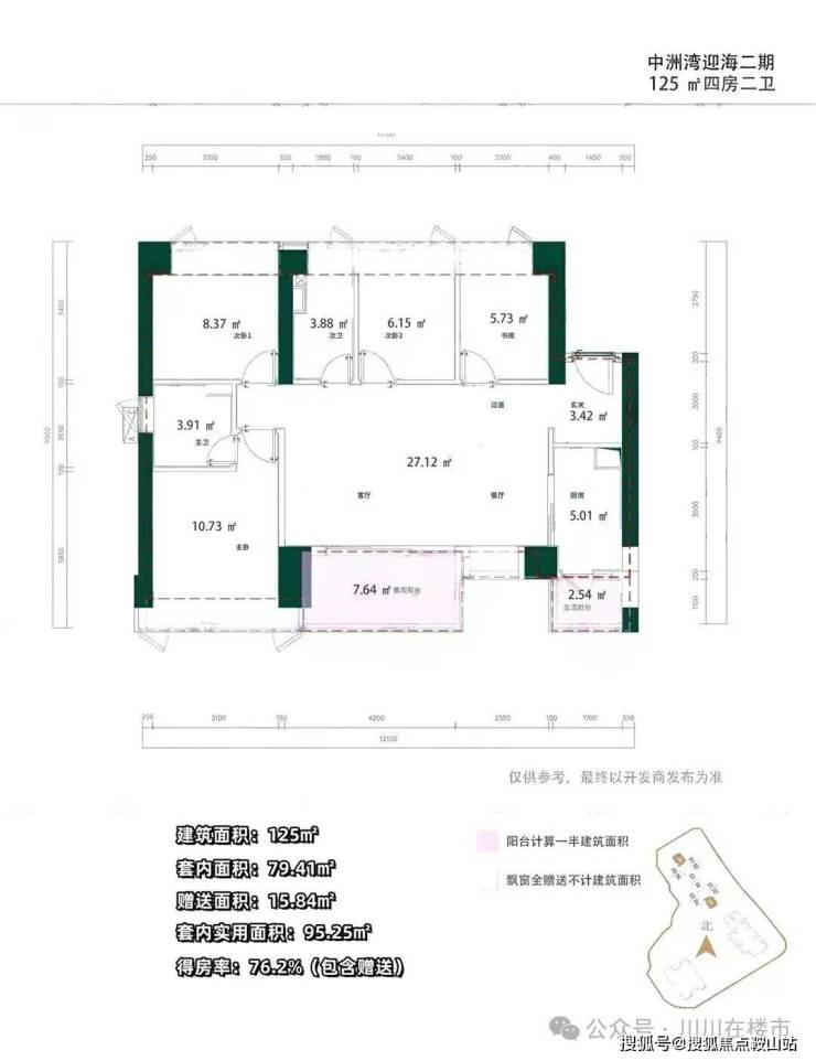 【户型面积】约96-109-125㎡中心3-4房