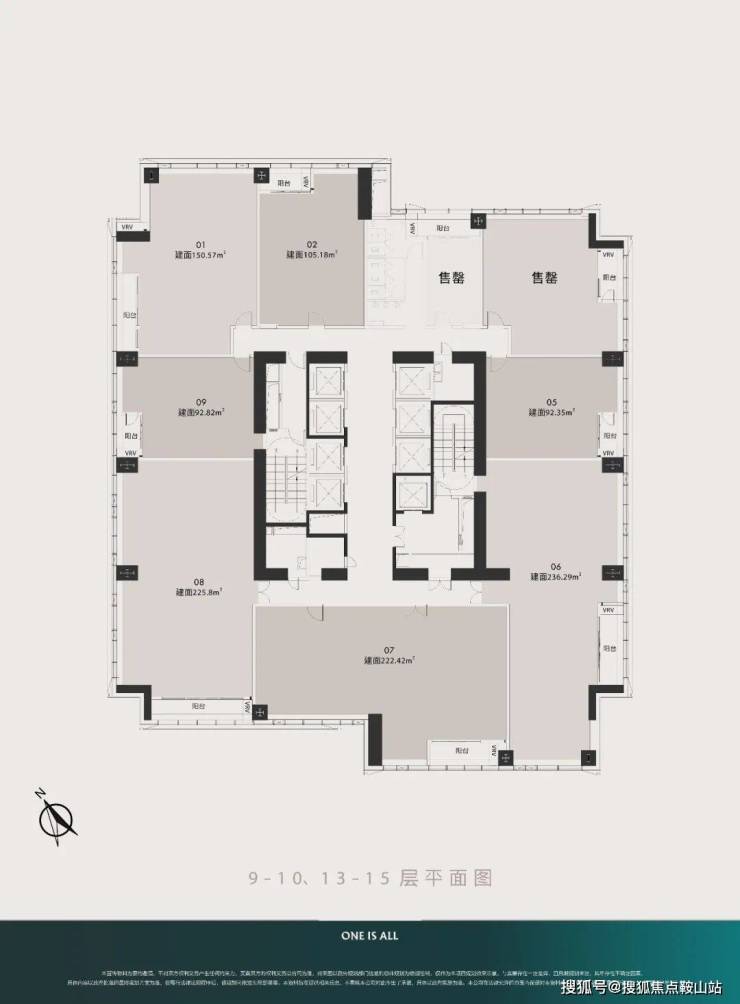 项目主推的是约93-236㎡的4.5米层高云端公馆,特点是通燃气、带阳台,在公寓产品里比较少见。