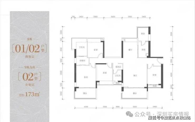 约173平4房2厅2卫(8栋01-02偶数层,9栋A-02奇数层)