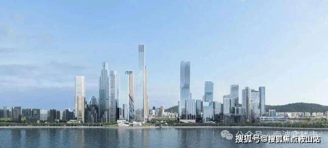并以“生境共栖,向海而生”为设计理念,采用一字排开无重叠的排布,以及东低西高的格局,将四栋超高层塔楼沿用地北侧错落布置,使形态更加疏朗开扬,形成了起伏有致的天际轮廓。