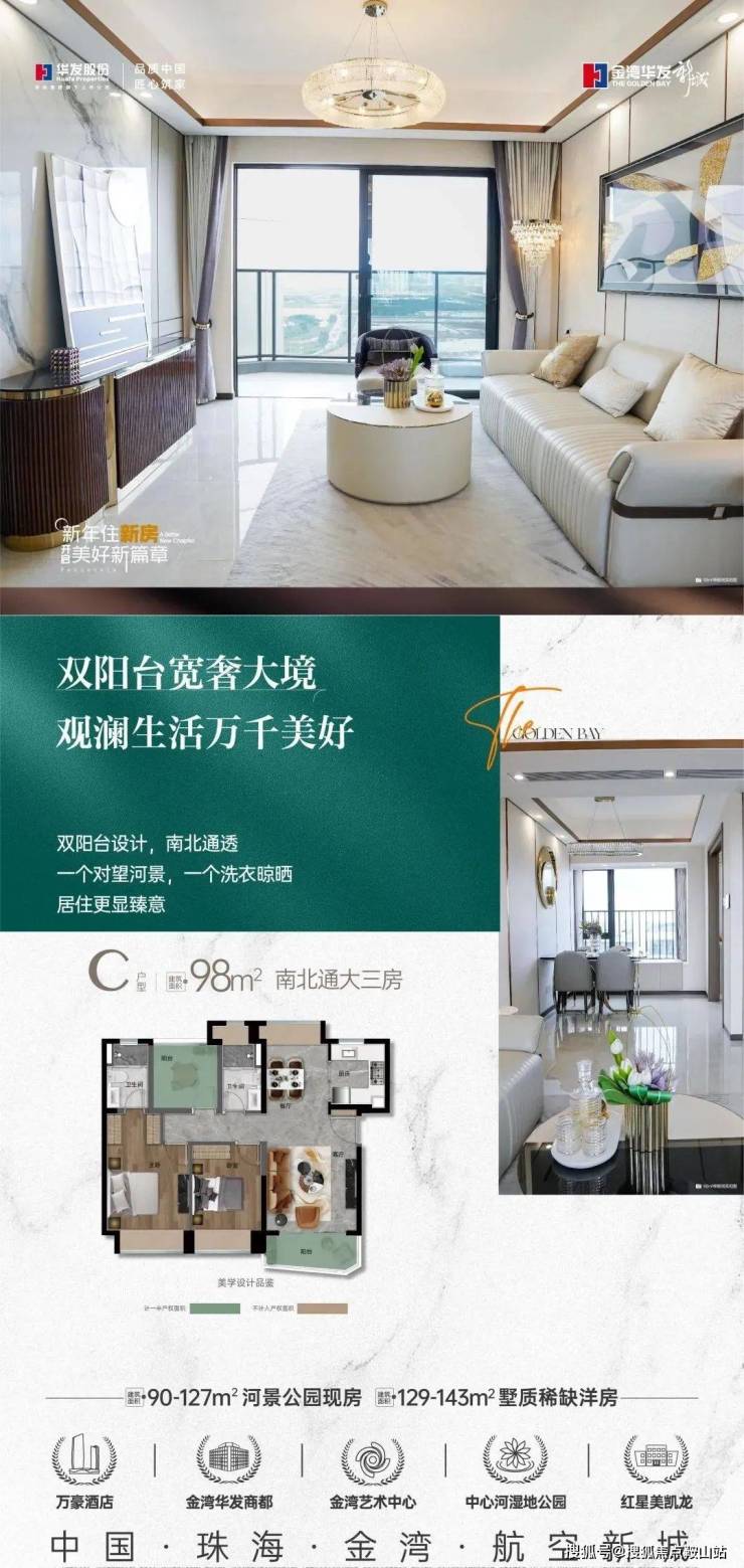 金湾华发新城 | 国际半岛 | 终极改善之选;航空新城核心区,华发精装准现房。高阶圈层 :业主都是老师、公务员、企业中高层等,交通便利 :15分钟即到横琴/市区,一线观景 :推窗即看一线河景/高尔夫,下楼就是湿地公园,优质教育:家门口领航小学(航小教育集团成员校,省级师资),百亿配套:四大中心,三大商圈,华发商都,吃喝玩乐一应俱全