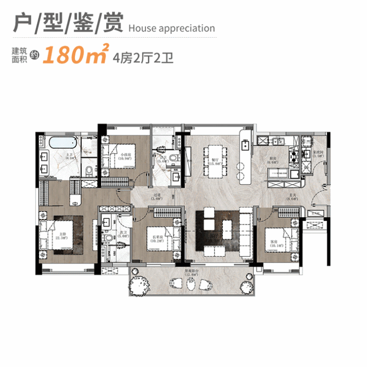建面约180㎡大平层:贵且精,货量很少,大概只有60套。